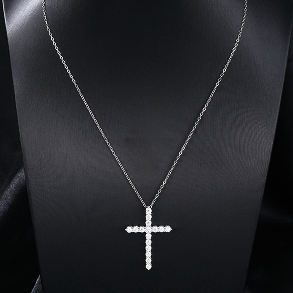 Large Cross | 1.6 CTW | VVS | Rhodium Plated 925 Silver | Round Shaped Moissanite Pendant